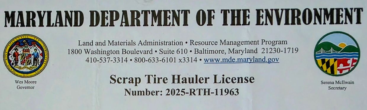 Old tires are unsightly and attrached pests. We are licensed by the Maryland Dept. Of Environment to remove, transport, and dispose of old tires.